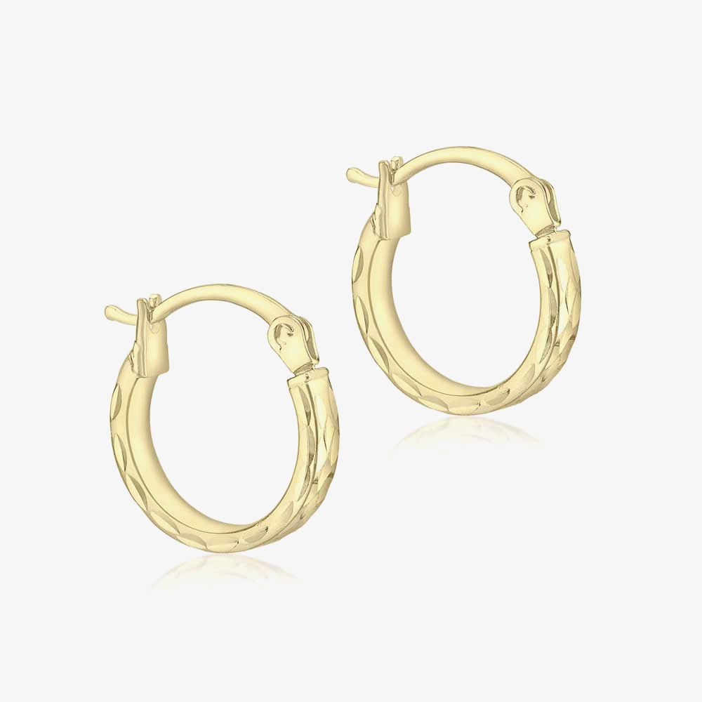 9ct Yellow Gold 10mm Diamond Cut Pine Hoop Earrings