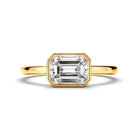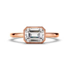 Emerald Cut Diamond Bezel East West Solitaire Engagement Ring