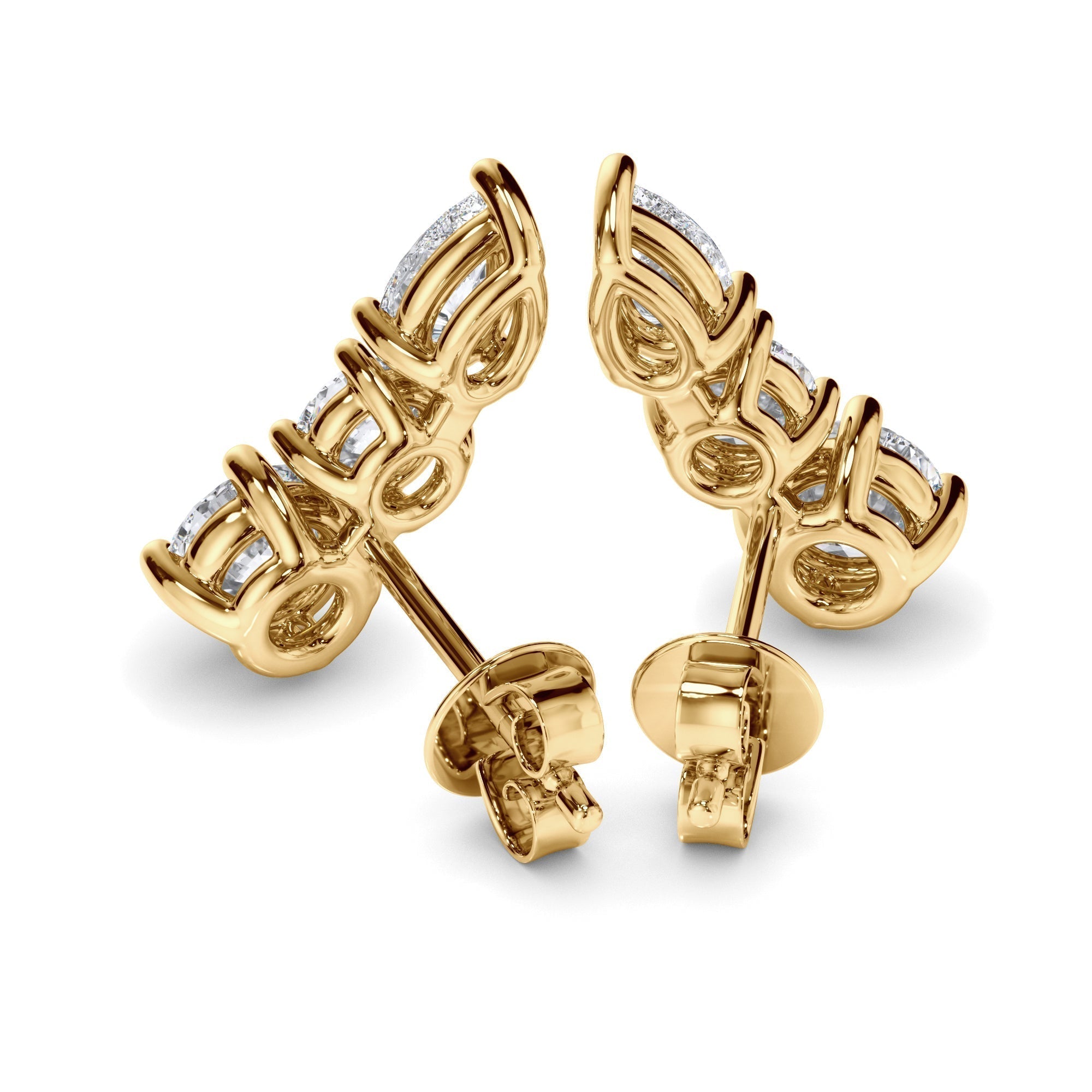 Round Brilliant & Pear Cut 3-Stone Stud Earrings