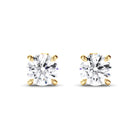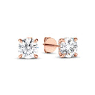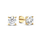 These round brilliant cut diamond stud earrings, made with your choice of diamond centre stone, feature a 0.10ct worth of round brilliant cut diamonds set along the sides of a classic 4-claw setting. Exuding fluidity in its line work, and boasting an elegant silhouette, as with all the pieces in our Bespoke Collection, this piece is made especially for you. Pictured here with a 1.00ct Round Brilliant Cut Diamond for each ear, the final price is determined following your centre stone selection.