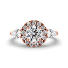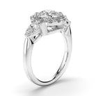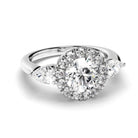 Round Brilliant Cut Diamond Halo Trilogy Engagement Ring with Pear Sides