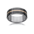 Tantalum is highly ductile and known for its resistance to wear and scratches, while Zirconium is strong and lightweight. Both metals are hypoallergenic and resistant to heat, making them perfect for creating long-lasting, stylish rings suitable for everyday wear. Explore our custom range of Australian Made Tantalum and Zirconium designs, crafted for both style and comfort. Image shown in ring size U with width 8mm, thickness 1.9mm, in 9ct Pink Gold, Zirconium and Tantalum. All rings in our men's wedding band collection are made to order, with a 4-6 week turn around. Book an instore no-obligation appointment, or make a product enquiry online today.