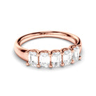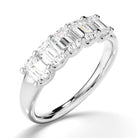 This stunning custom-made anniversary ring features five emerald cut diamonds set on an 18ct gold or platinum band. Exuding fluidity in its line work, and boasting an elegant silhouette, as with all the pieces in our Bespoke Collection, this piece is made especially for you.