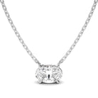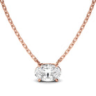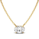 This elegant oval cut diamond necklet, made with your choice of diamond centre stone, features an East West setting and includes a 45cm 18ct gold chain. Exuding fluidity in its line work, and boasting an elegant silhouette, as with all the pieces in our Bespoke Collection, this piece is made especially for you. Pictured here with a 1.50ct Oval Cut Diamond, a final price is determined following your centre stone selection.
