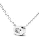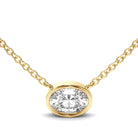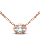 This elegant diamond bezel set solitaire necklet is made with your choice of diamond centre stone and includes a 45cm 18ct gold chain. Exuding fluidity in its line work, and boasting an elegant silhouette, as with all the pieces in our Bespoke Collection, this piece is made especially for you. Pictured here with a 1.50ct Oval Cut Diamond centre stone, a final price is determined following your centre stone selection.
