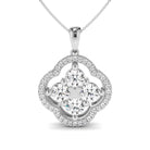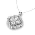 This elegant diamond feature pendant features four 0.25ct round brilliant cut diamonds with a 0.20ct round brilliant cut diamond halo in a clover-like design. Exuding fluidity in its line work, and boasting an elegant silhouette, as with all the pieces in our Bespoke Collection, this piece is made especially for you.