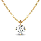 This elegant round brilliant cut diamond pendant is made with your choice of diamond centre stone and includes a 45cm 18ct gold chain. Exuding fluidity in its line work, and boasting an elegant silhouette, as with all the pieces in our Bespoke Collection, this piece is made especially for you. Pictured here with a 1.00ct Round Brilliant Cut Diamond, a final price is determined following your centre stone selection.