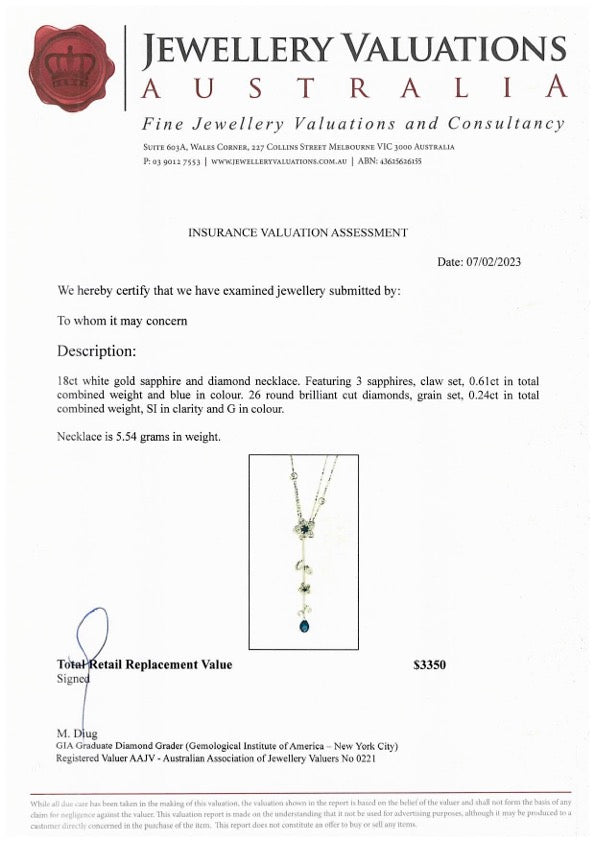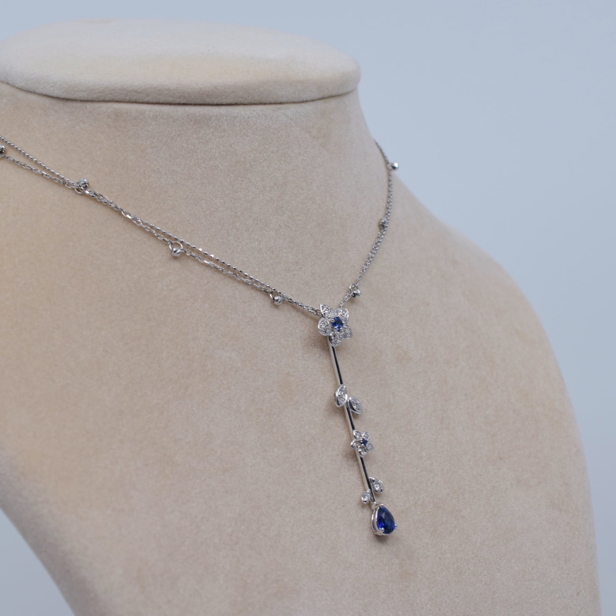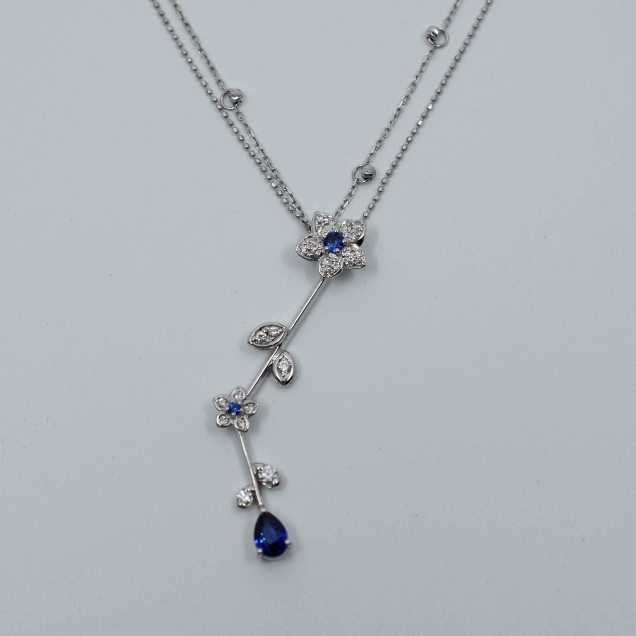 18ct White Gold Sapphire & Diamond Articulated Floral Pendant Necklace with valuation of $3350