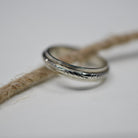 This ring is so simple and elegant. It has a lovely art deco feel to it, with the smaller band having a lovely scrollwork pattern which is quite fine rather than big and bold. That finer band has been soldered to the wider band underneath which gives it width and a good weight without taking away from the design.