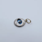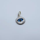 This pendant is incredibly well done. Instead of being flat like other evil eye pendants, the glass cabochon centre gives it depth as well. Made from 9ct white gold which has been textured in a radiant pattern, the centre houses a clear glass cabochon of a realistic blue coloured eye.