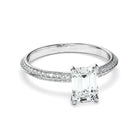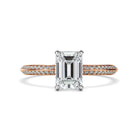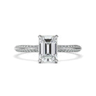 Emerald Cut Diamond Knife Edge Engagement Ring With Diamond Pave Sides