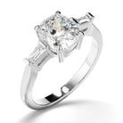 Cushion Cut Diamond Trilogy Engagement Ring with Baguette Sides