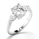 Cushion Cut Diamond Trilogy Engagement Ring with Pear Sides