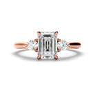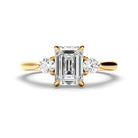 Emerald Cut Diamond Trilogy Engagement Ring with Round Brilliant Sides