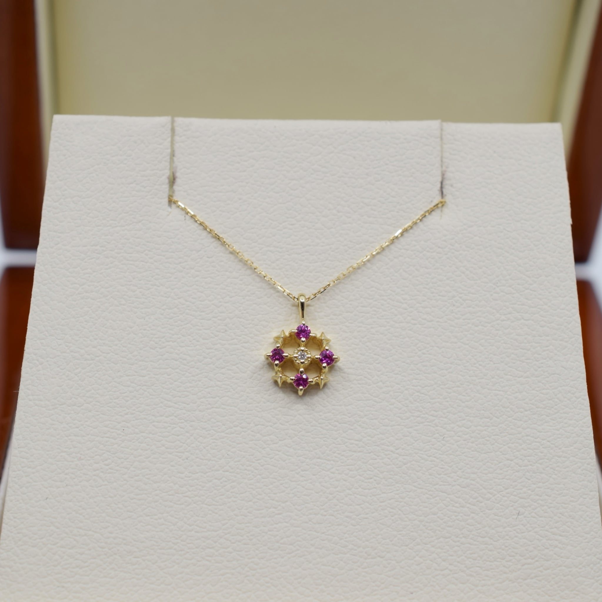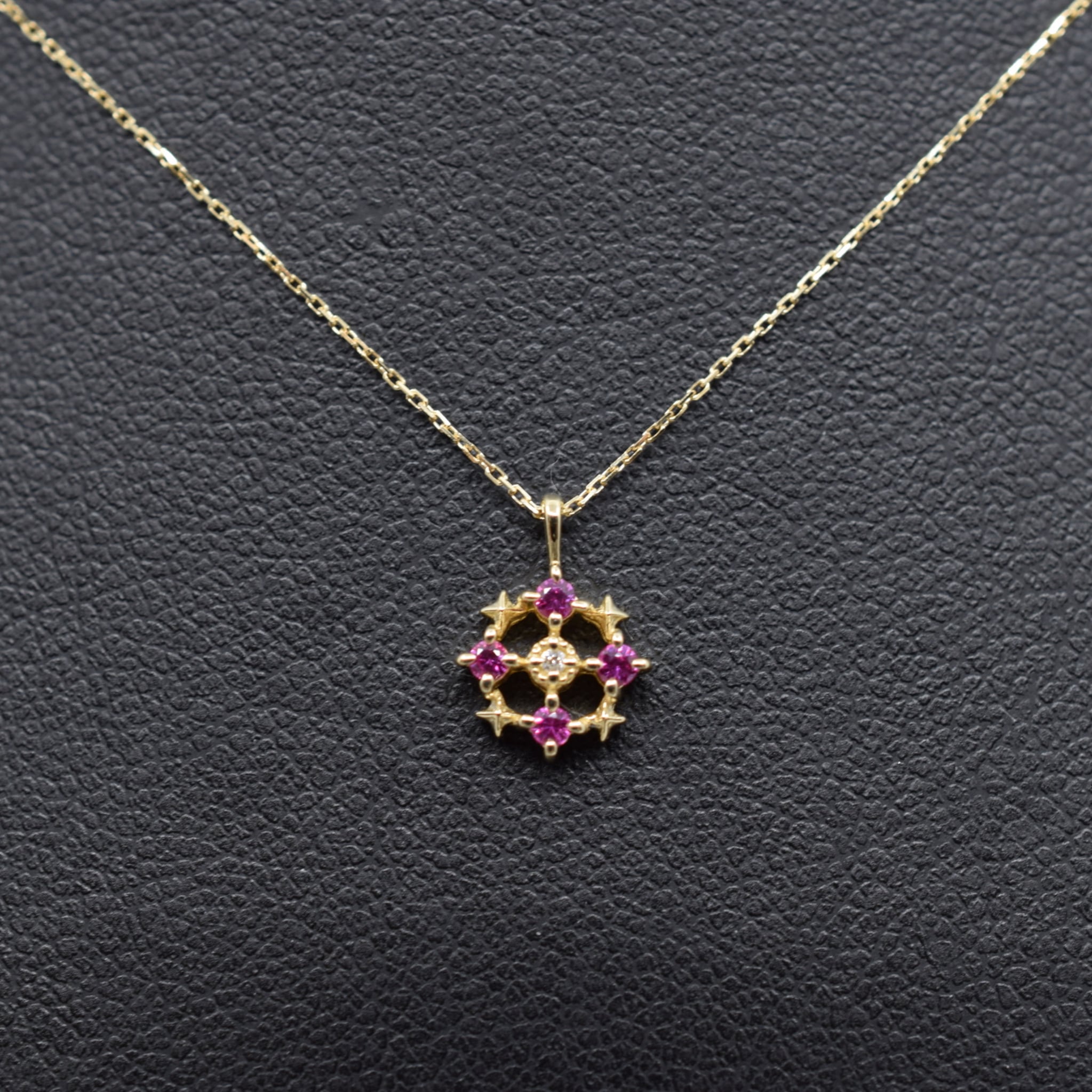10ct Yellow Gold Ruby and Diamond Starry Sky Necklace