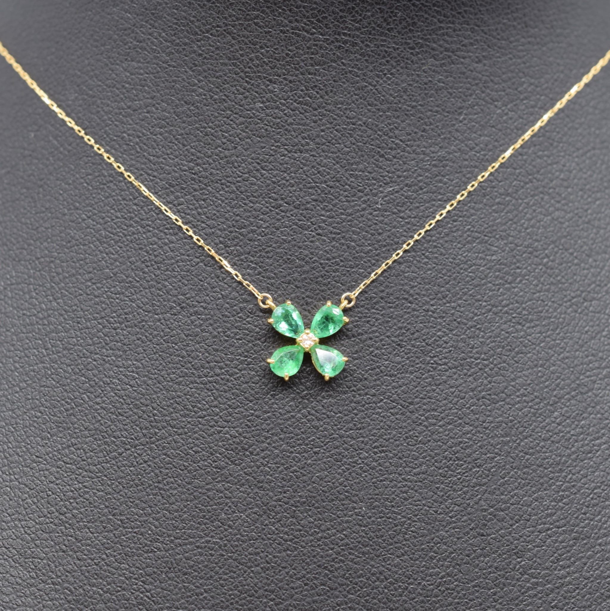 18ct Yellow Gold 0.55ct Emerald and Diamond Flower Necklace