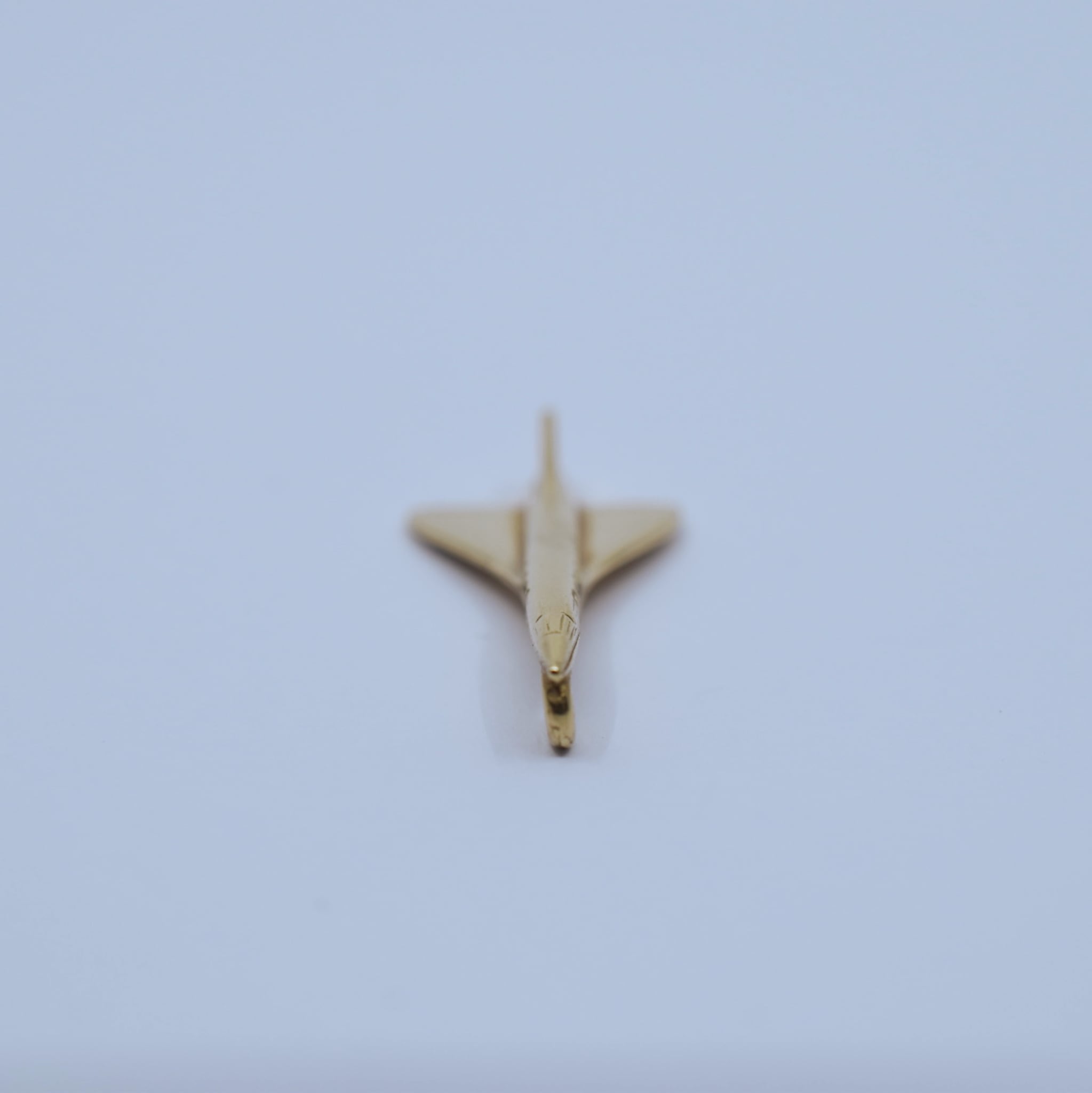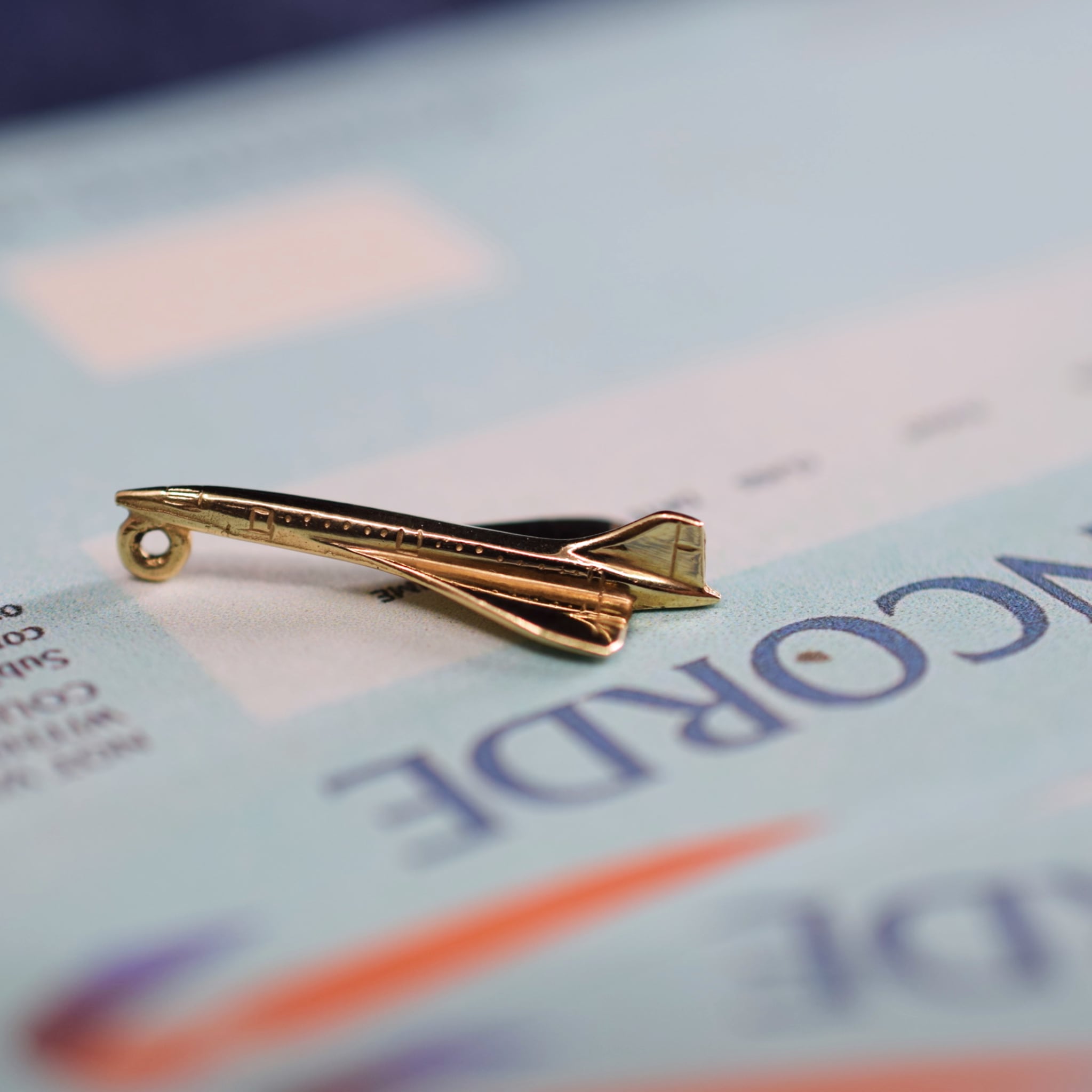 This lovely solid 9ct Yellow Gold pendant / charm of the revolutionary Concorde brings a burst of nostalgia with it. With engraved detail on the fuselage, wings and tail - it is instantly recognisable as the aircraft that made it possible to fly from London to New York in 3 hours.