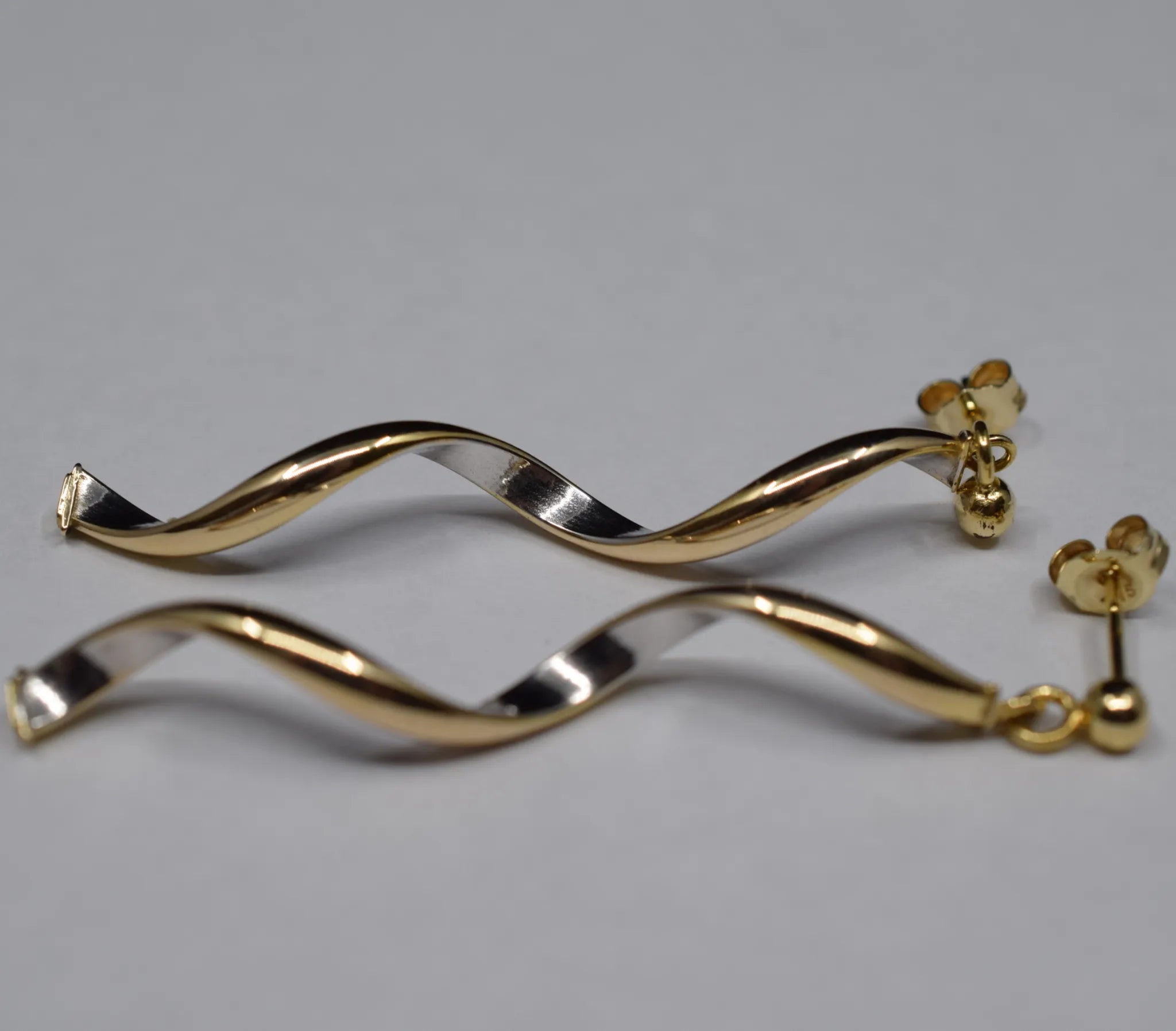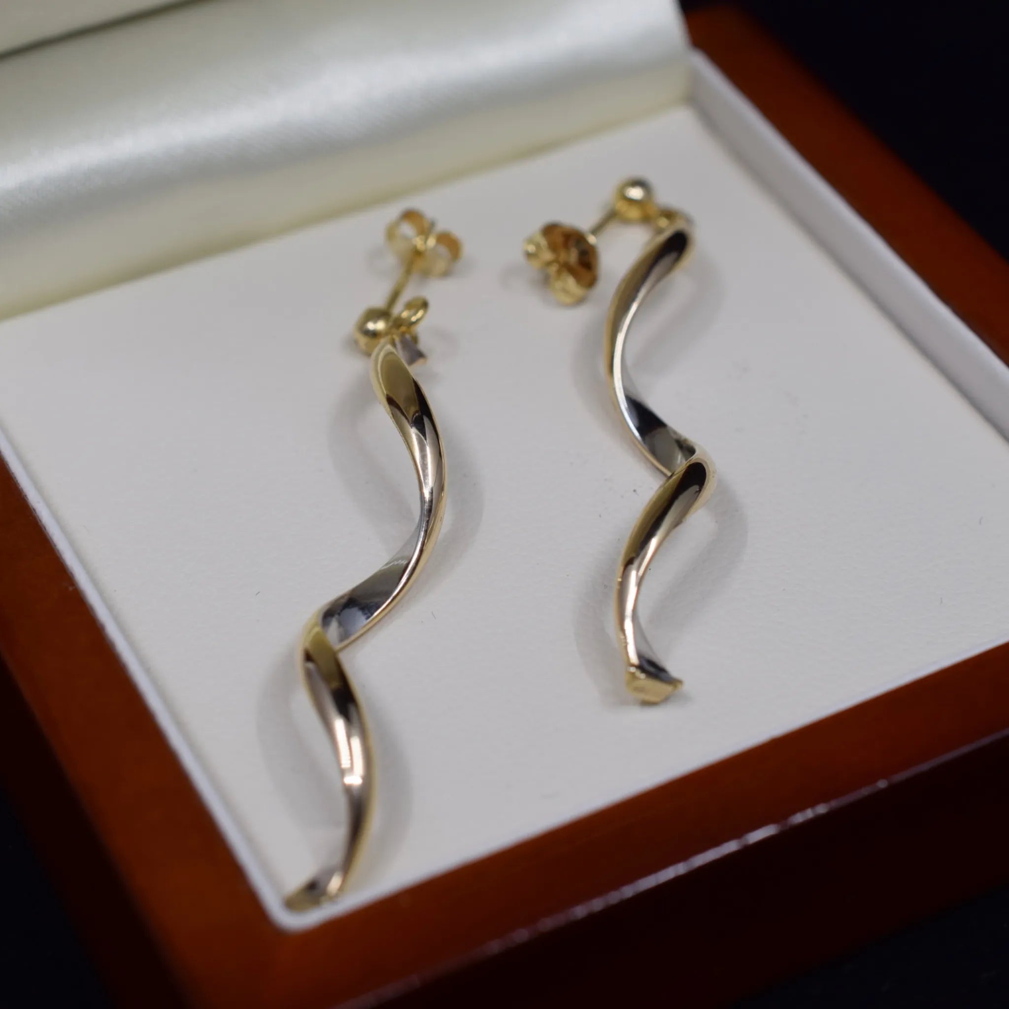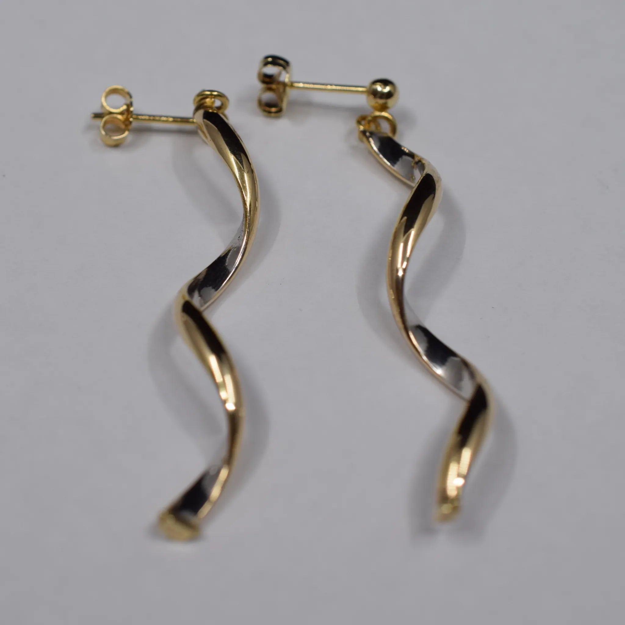 Contemporary 9ct Yellow & White Gold Twisted Drop Earrings