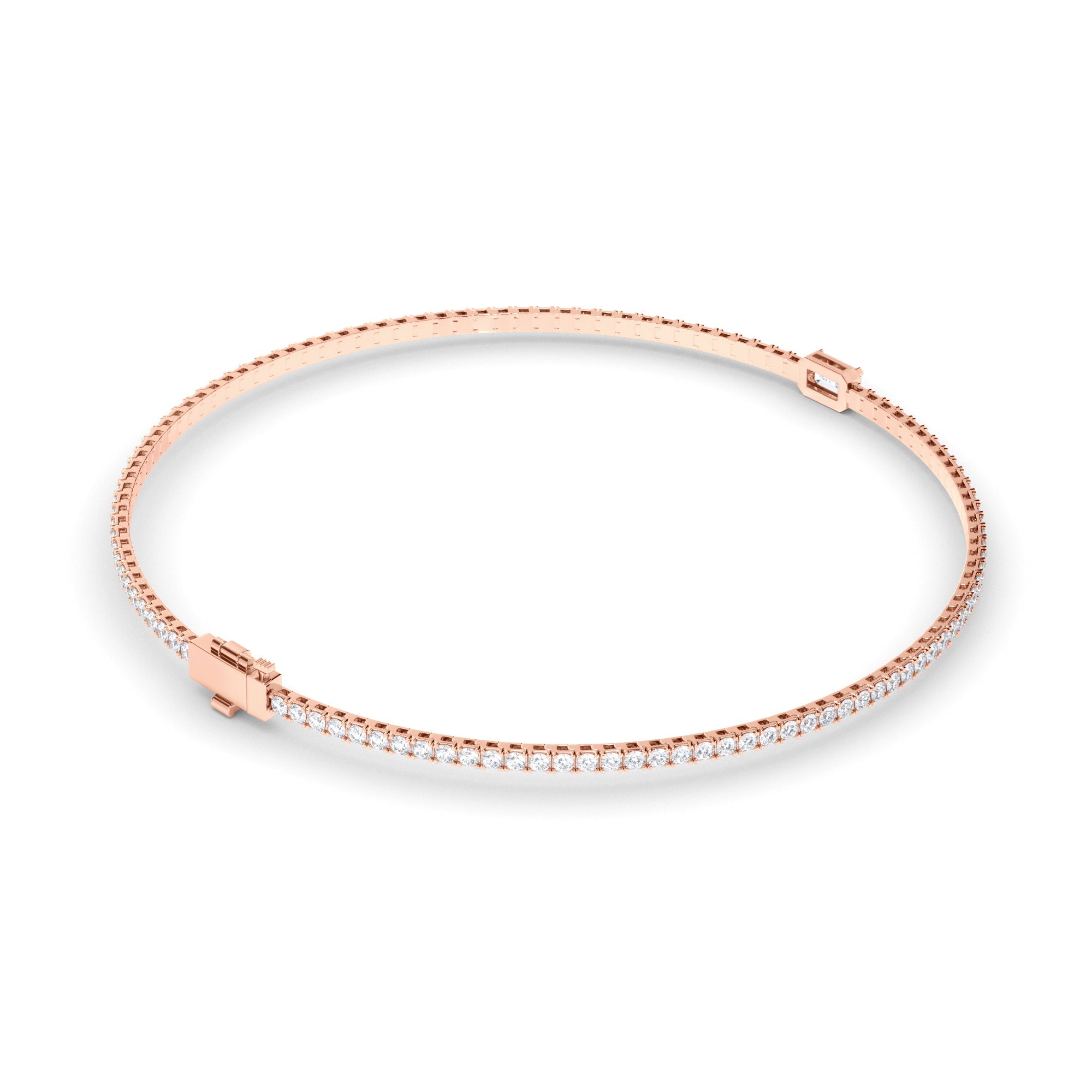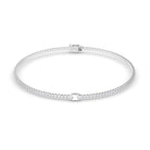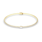 As a part of our Bespoke Collection this timeless round brilliant cut laboratory grown diamond tennis bracelet, featuring an emerald cut diamond bezel set solitaire, is made especially for you.