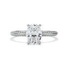 Oval Cut Diamond Knife Edge Engagement Ring With Diamond Pave Sides