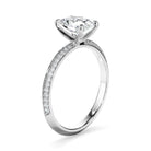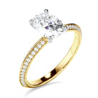 This timeless custom-made oval cut diamond solitaire ring, made with your choice of diamond centre stone, features two rows of round brilliant cut pave set diamonds set across a knife edge band. Exuding fluidity in its line work, and boasting an elegant silhouette, as with all the pieces in our Bespoke Collection, this piece is made especially for you.
