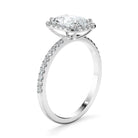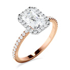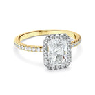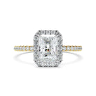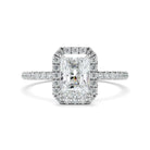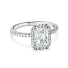 Radiant Cut Diamond Halo Engagement Ring With Pave Band