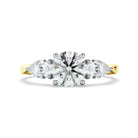 Round Brilliant Cut Diamond Engagement Ring With Pear Cut Diamond Sides