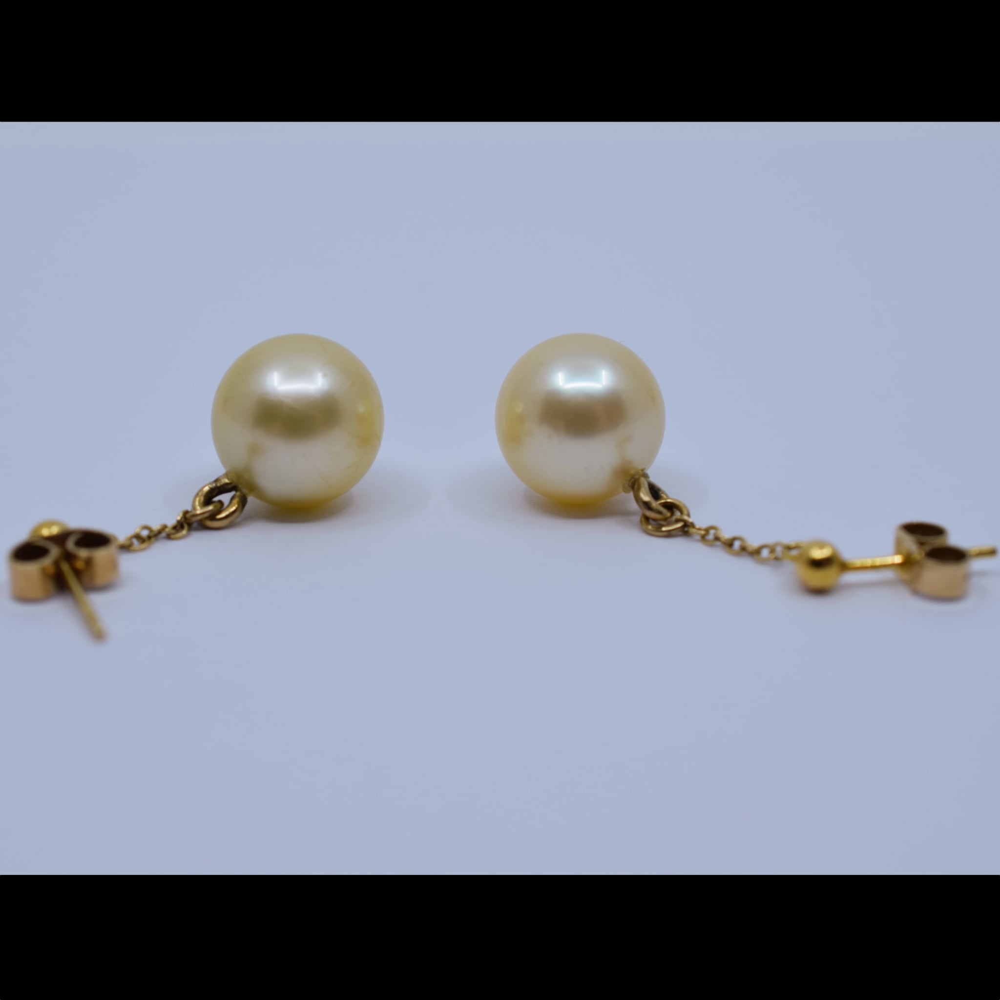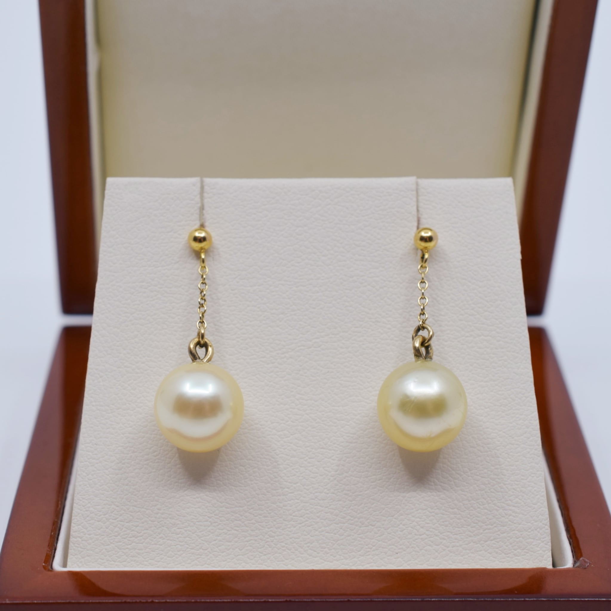 Vintage 10-11mm South Sea Pearl 9ct Yellow Gold Drop Earrings
