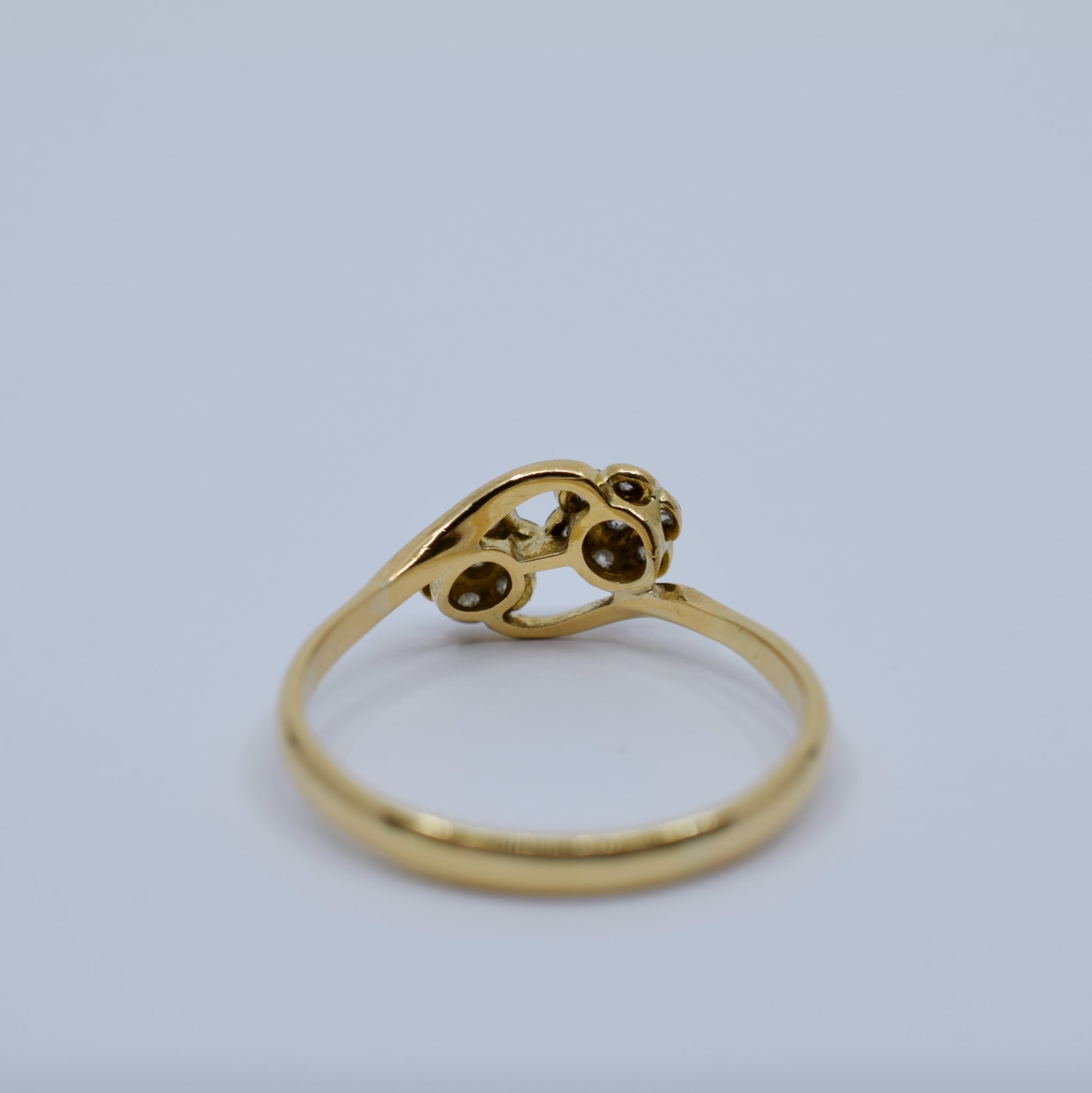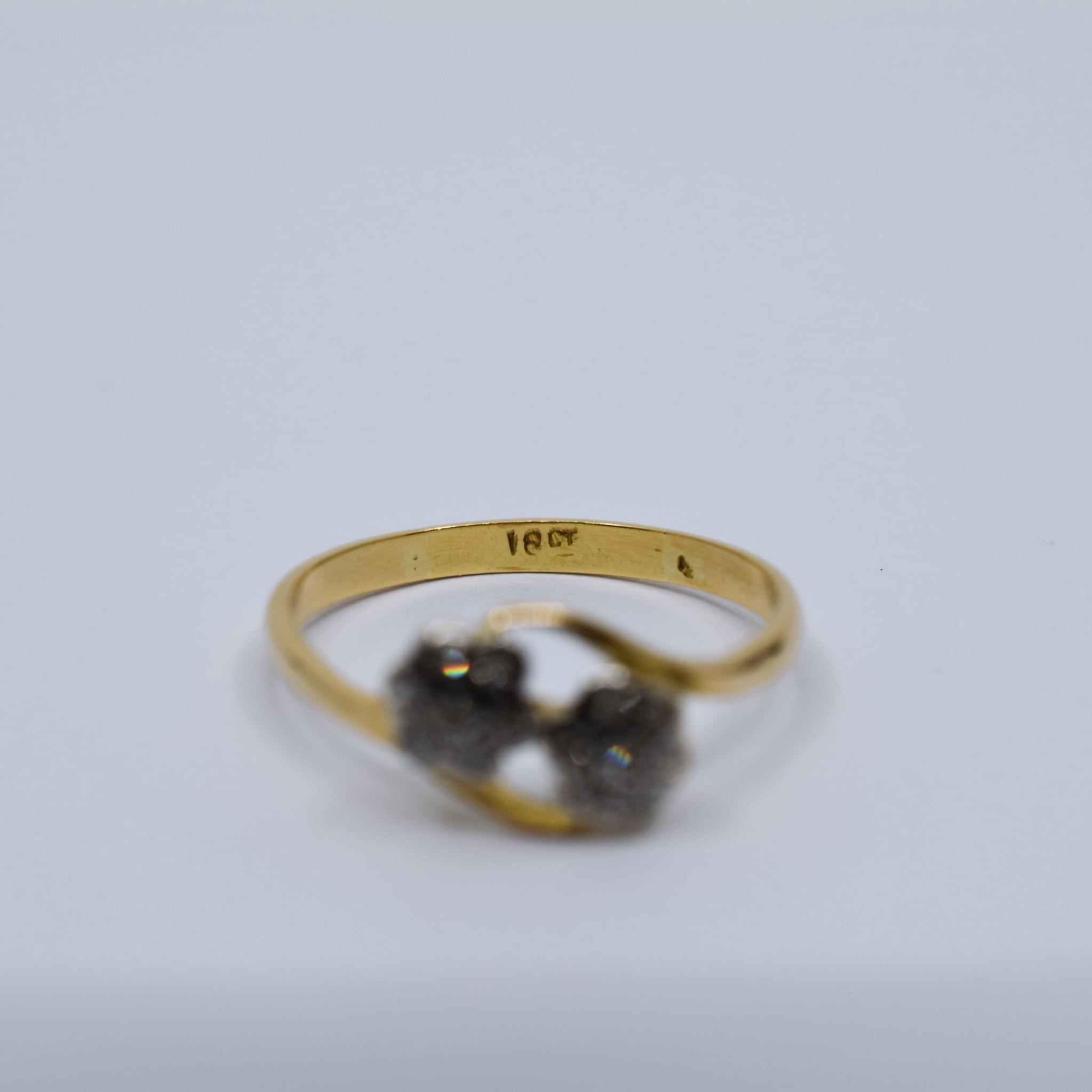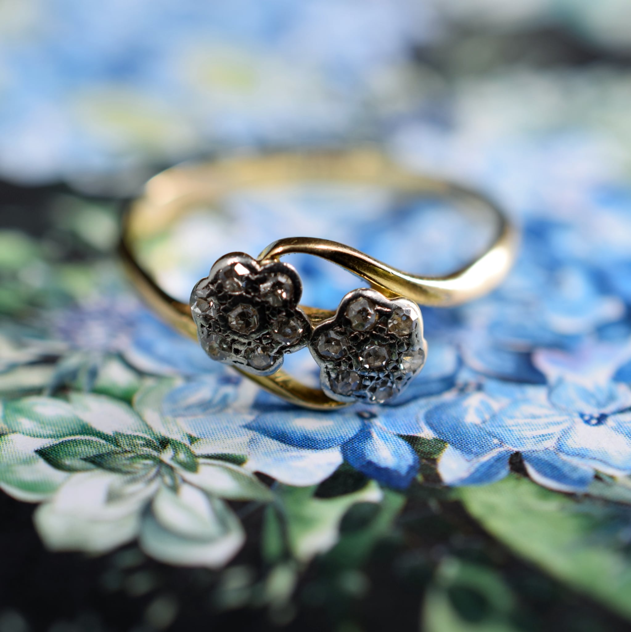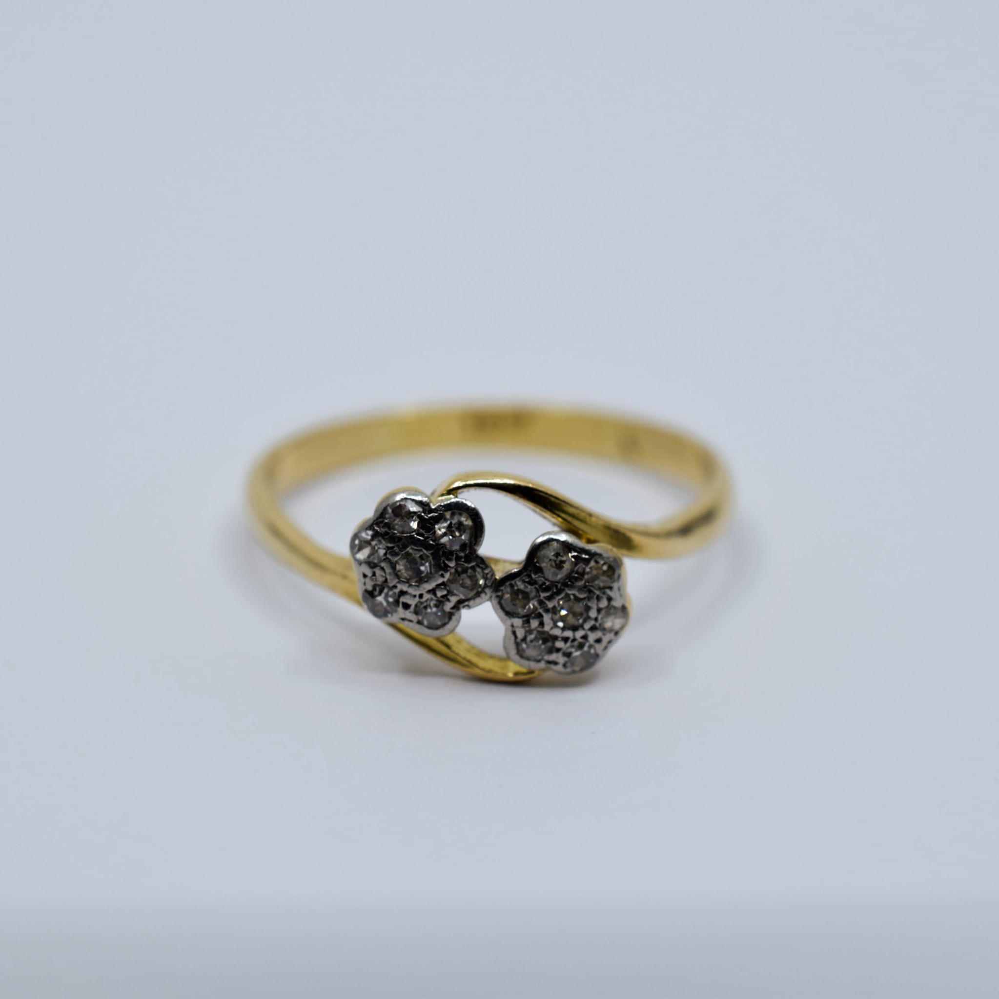 Vintage 18ct Gold Double Cluster Old Cut Diamond Crossover Ring
