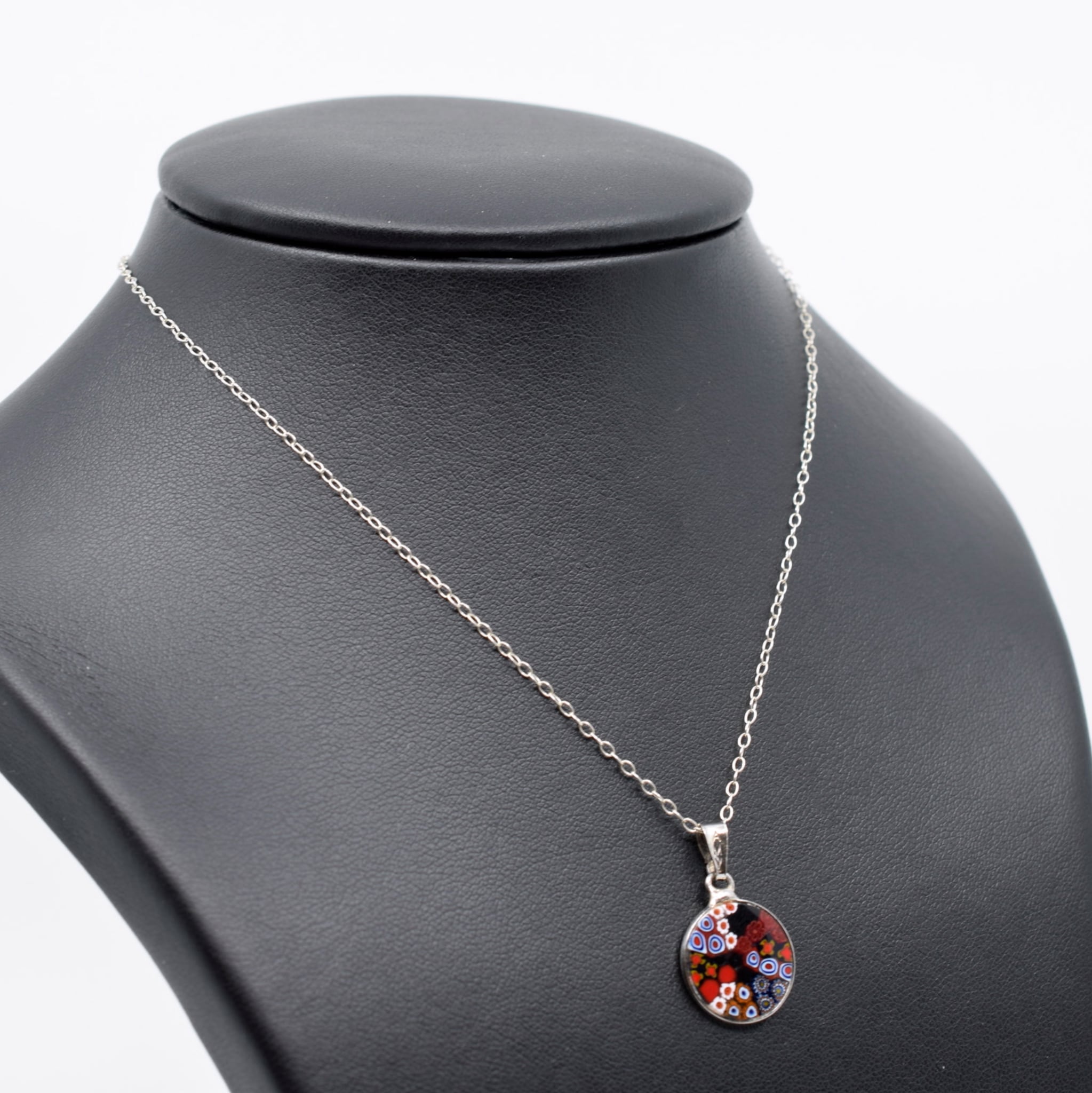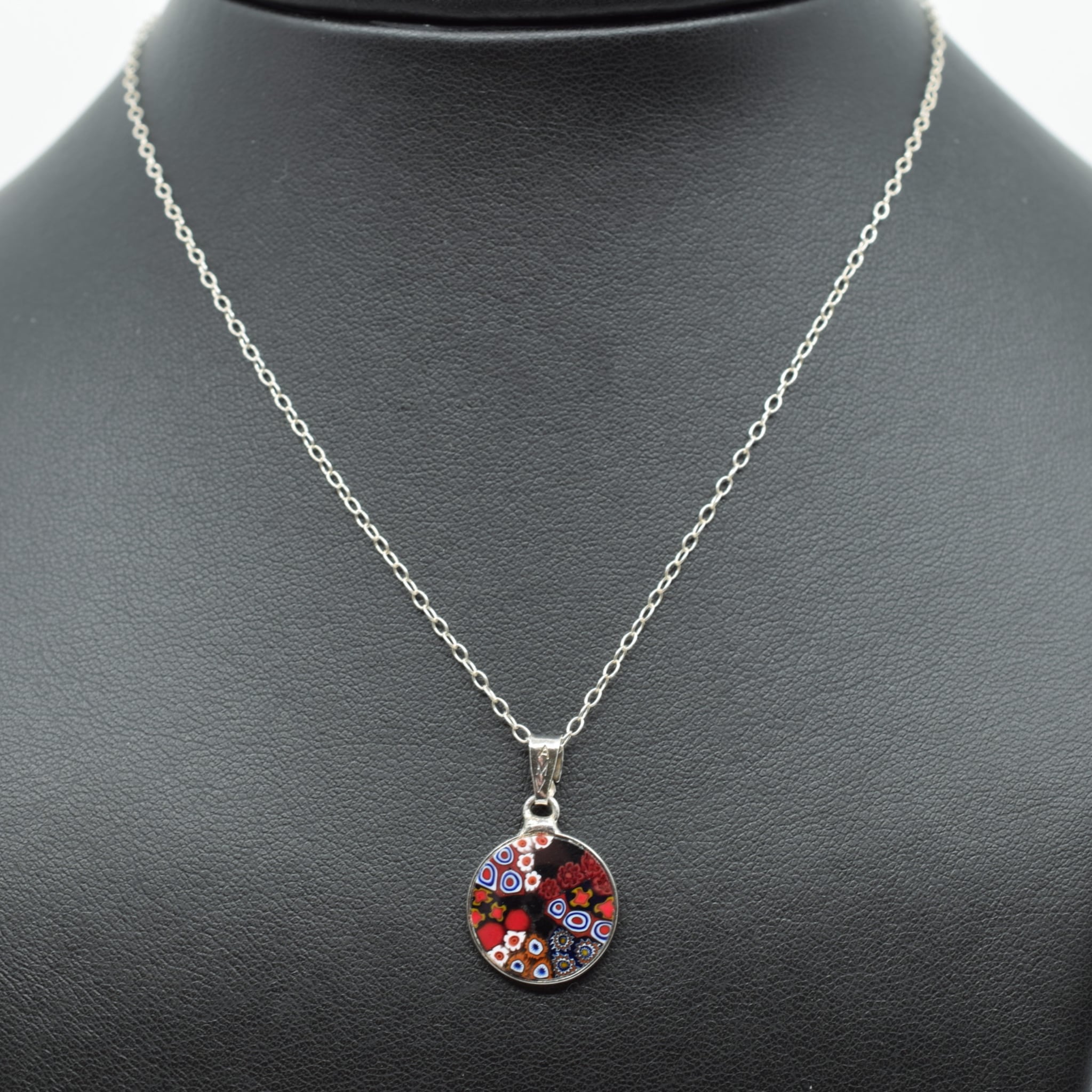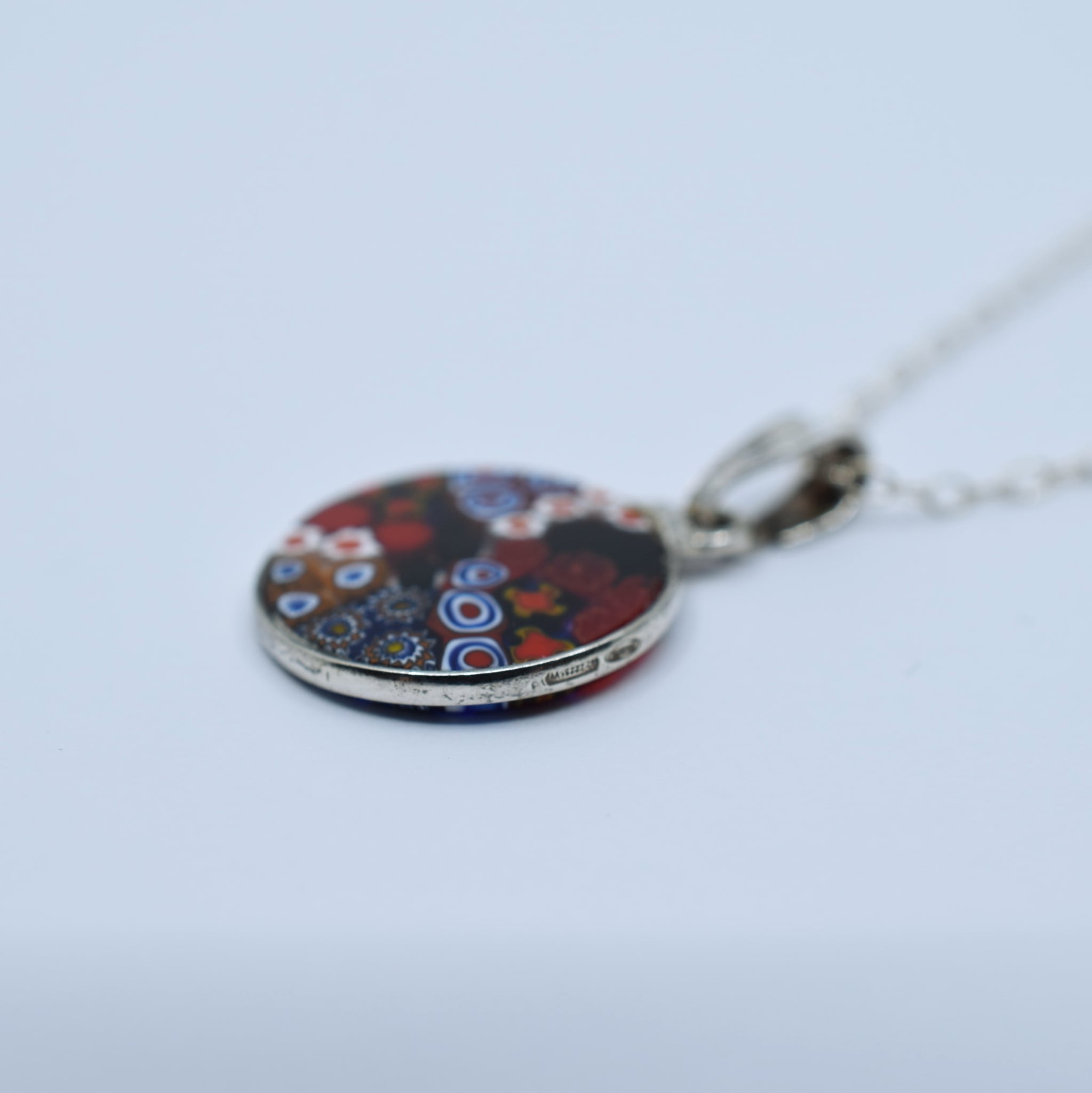Vintage Sterling Silver Millefiori Pendant Necklace by Antica Murrina Veneziana